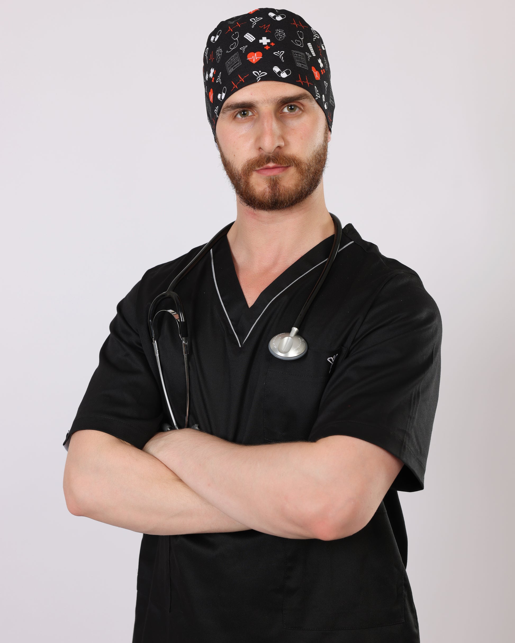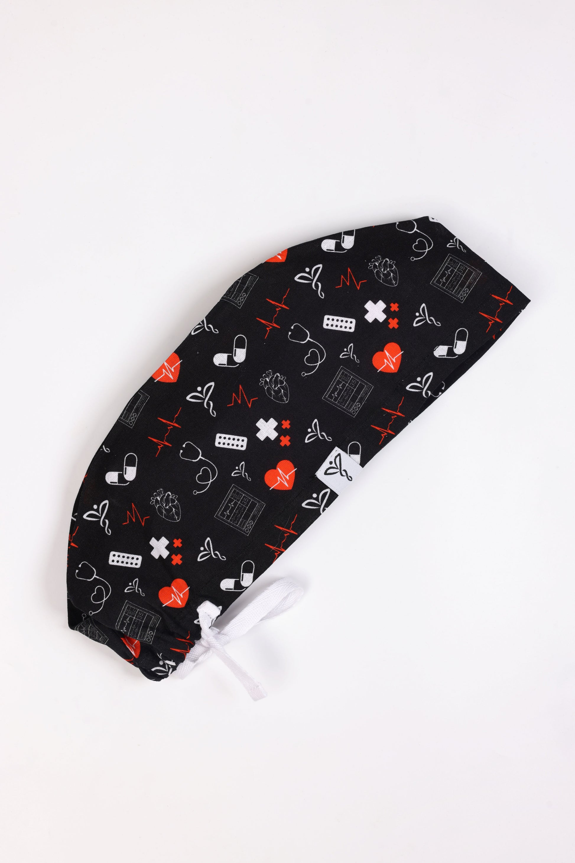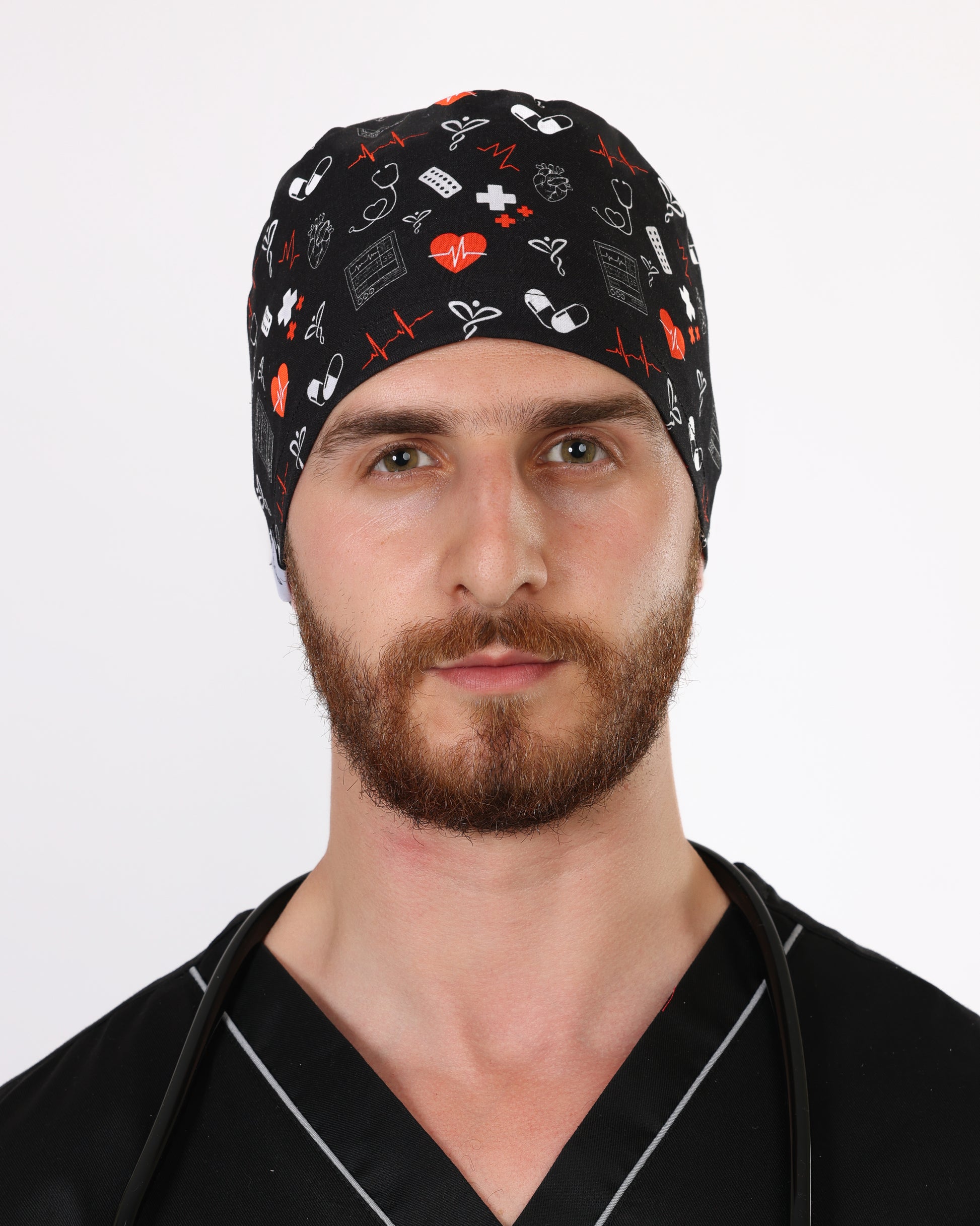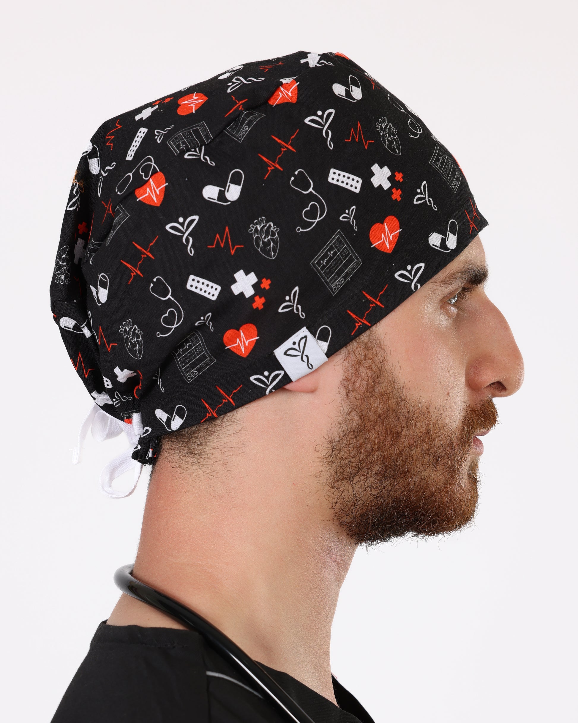 Calot Médical Unisexe – Motif Heartbeat Noir