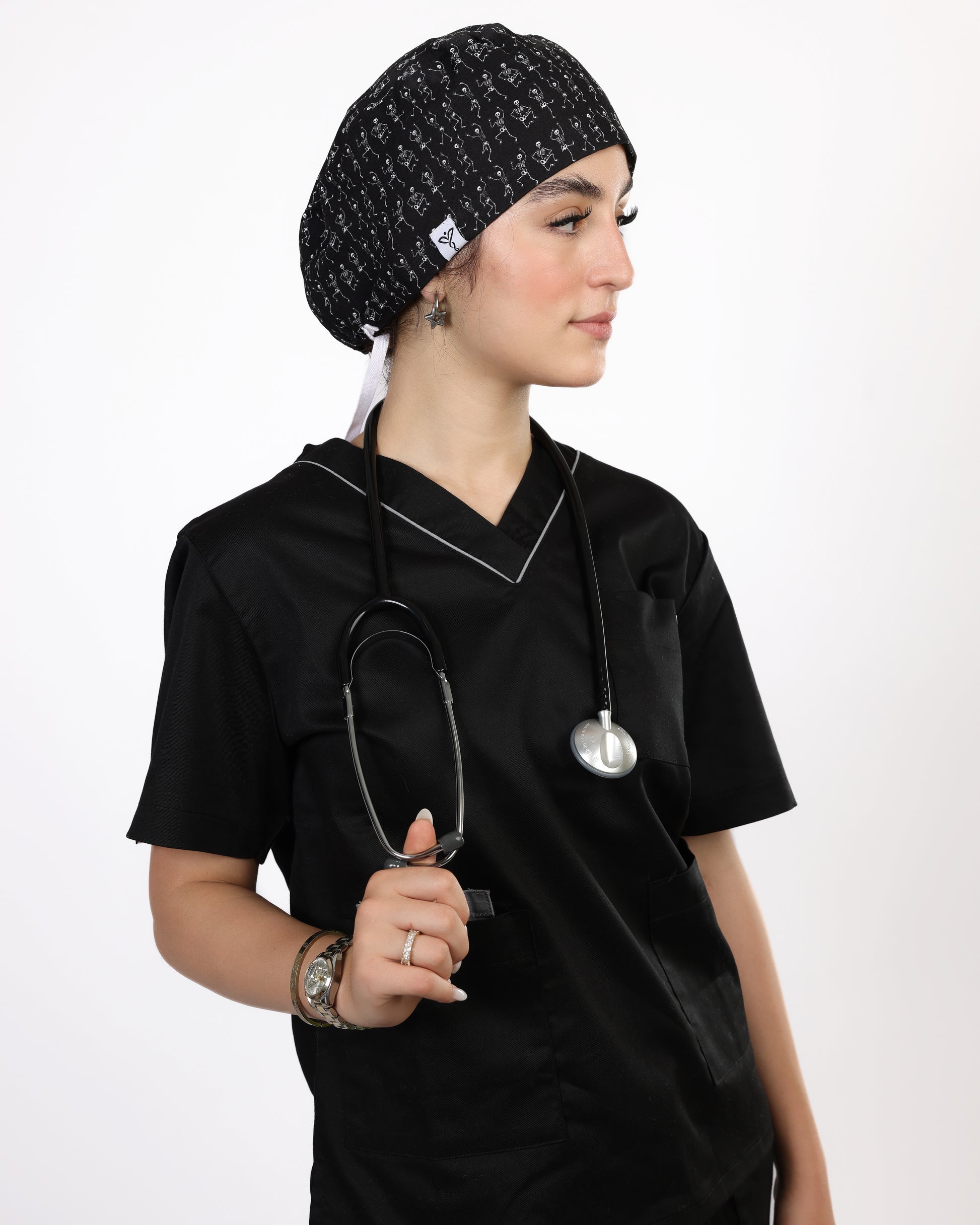Calot Médical Unisexe – Motif Squelettes Fun Noir