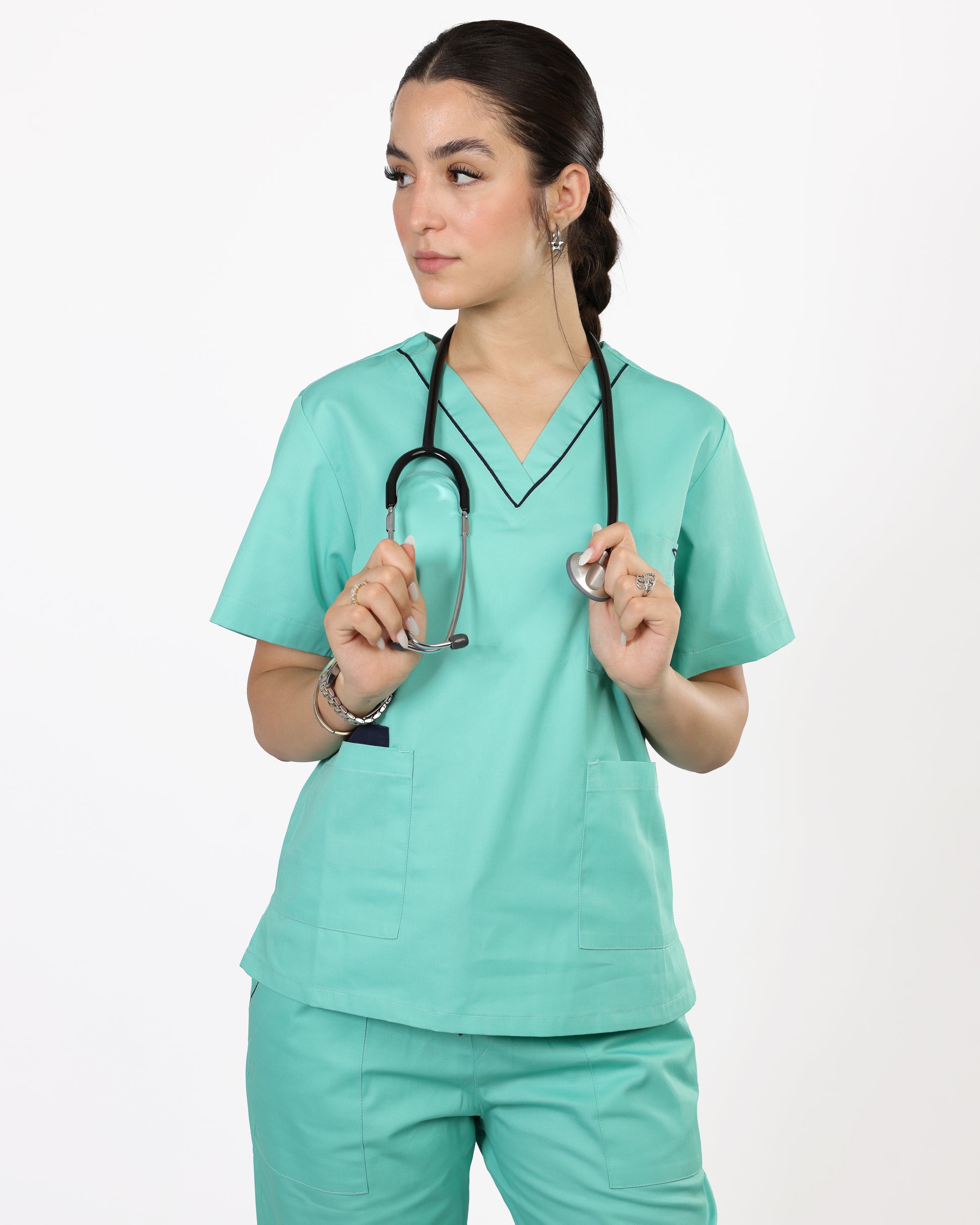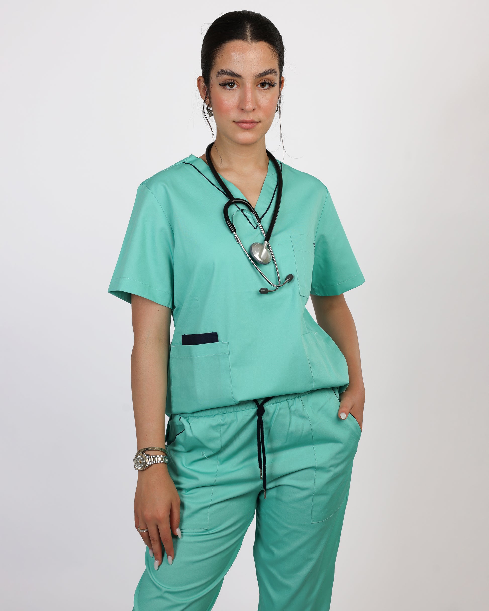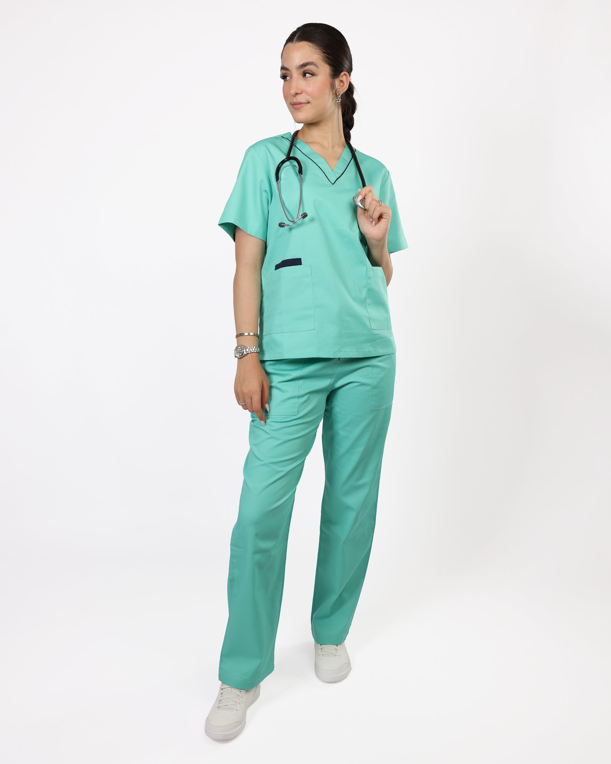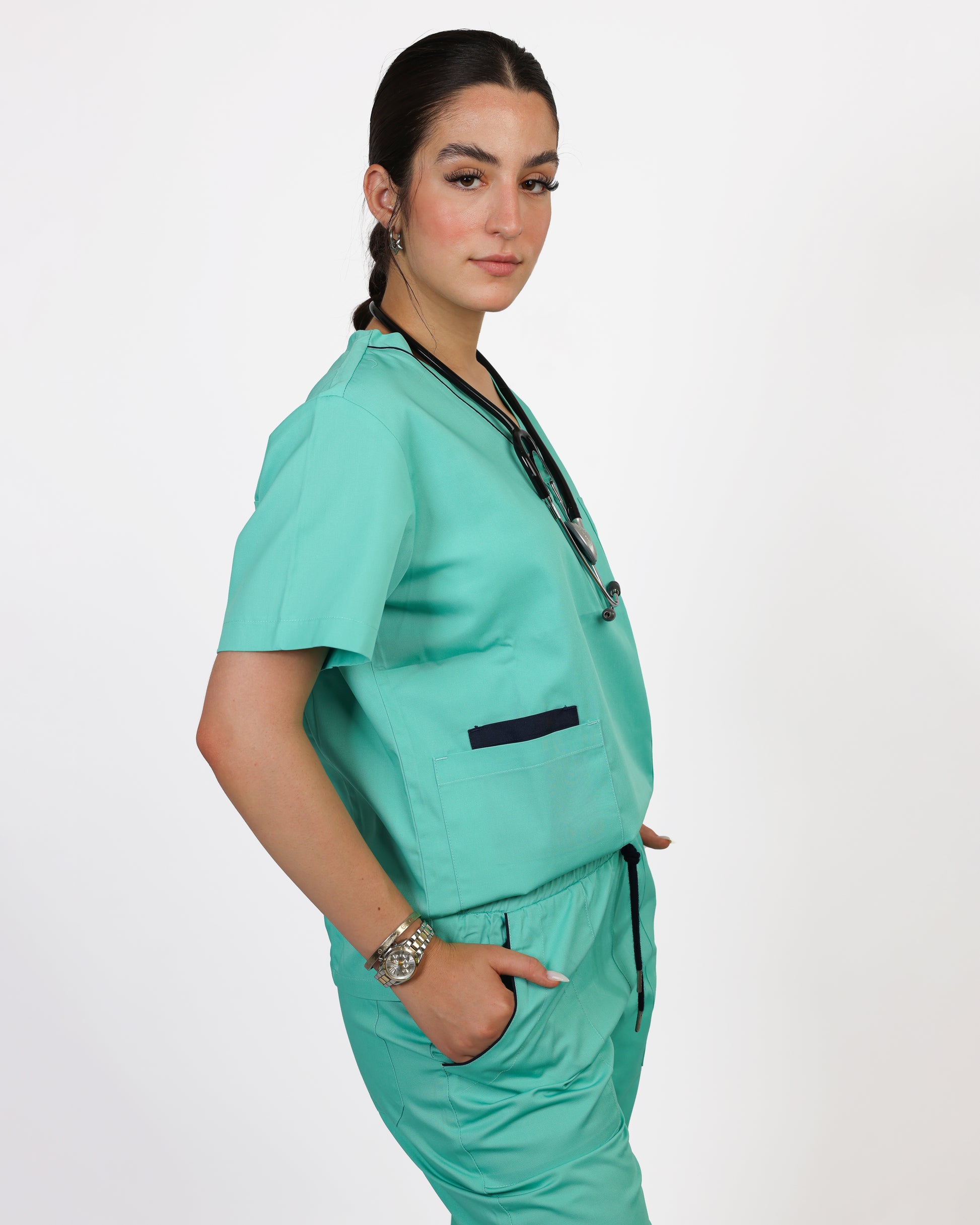 Pyjama de Bloc Col V Femme - Vert D'Eau